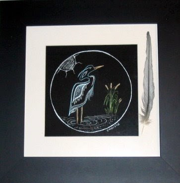 This is a picture done on black mat board with gel pens. I actually had a heron feather to include in the mix.